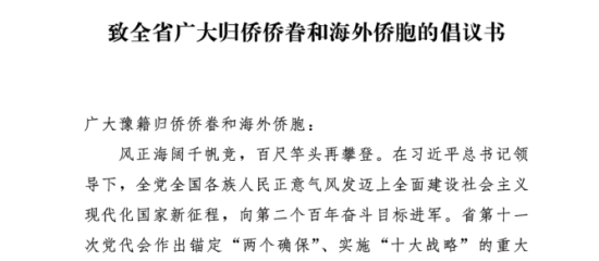 河南僑聯(lián)發(fā)布致全省廣大歸僑僑眷和海外僑胞倡議書