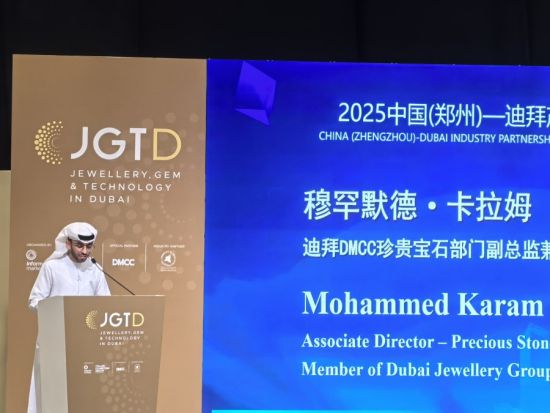 在關(guān)鍵的平臺建設(shè)環(huán)節(jié),河南省培育鉆石交易中心平臺服務(wù)部部長李偉先生登臺,向大會詳細(xì)介紹了交易中心的戰(zhàn)略定位與核心功能。在洞察行業(yè)趨勢環(huán)節(jié),英富曼會展集團(tuán)的劉小雯女士解讀了迪拜珠寶展的全球商機(jī),迪拜DMCC的穆罕默德·卡拉姆先生則分享了當(dāng)?shù)卣滟F的寶石貿(mào)易政策與市場潛力。