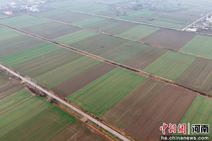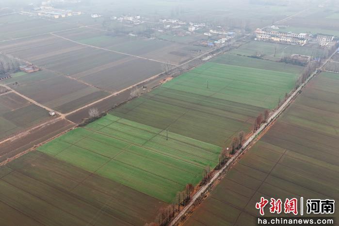 圖為俯瞰雨后冬小麥麥田。(無人機(jī)照片)中新社記者 闞力 攝