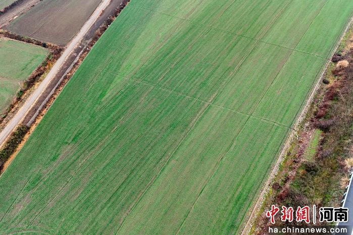 圖為雨后冬小麥麥田一片清新。(無人機(jī)照片)中新社記者 闞力 攝