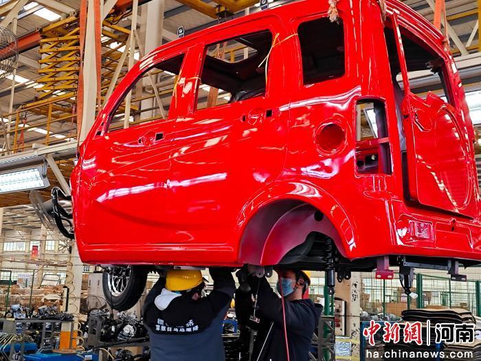 圖為洛陽(yáng)珠峰華鷹三輪摩托車有限公司組裝工人在生產(chǎn)線上作業(yè)。張楠 攝
