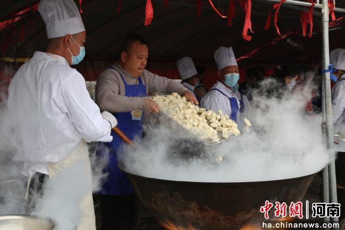 圖為工作人員在活動現(xiàn)場煮餃子。馮福軍 攝