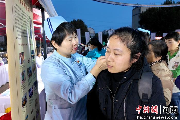 10月31日晚,河南鄭州二砂文創(chuàng)園廣場(chǎng)中醫(yī)藥文化夜市人氣十足,來自鄭州市中醫(yī)院醫(yī)護(hù)人員現(xiàn)場(chǎng)展示推拿、刮痧、耳貼等傳統(tǒng)中醫(yī)療法,免費(fèi)為民眾提供健康咨詢和診療服務(wù)。